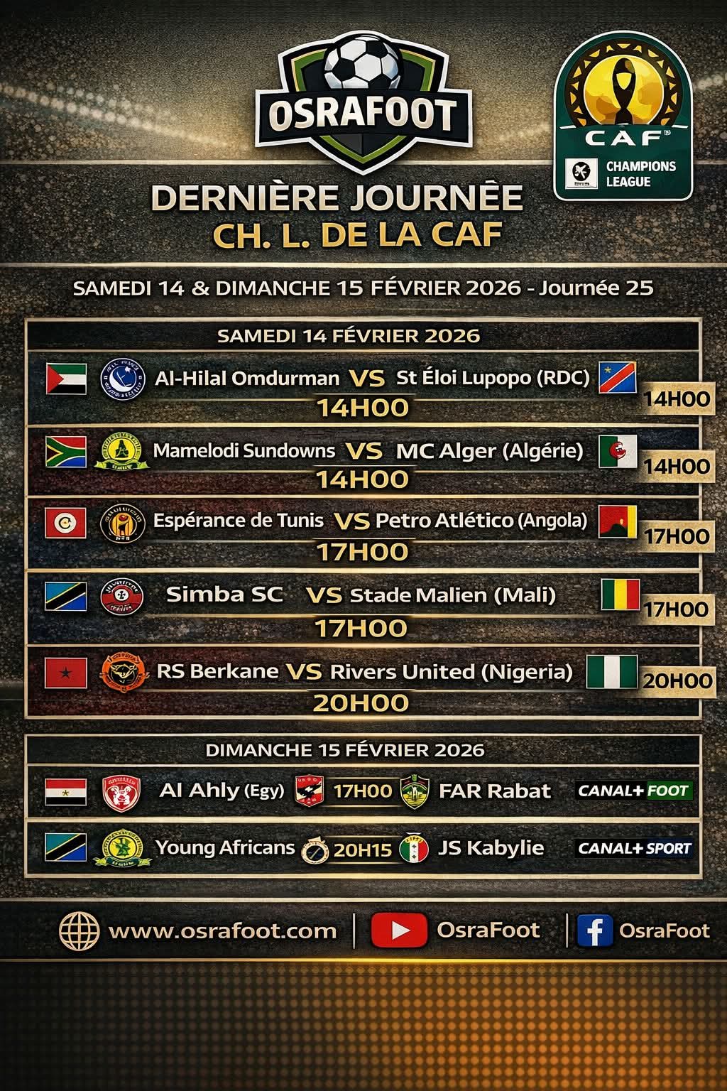 Ch. L. CAF Sport divers Ligue des champions africaine calendrier et résultats 2 semaines ago abdelfettah Post navigation Previous Coupe du Roi – Demi-finale aller Compositions probablesNext Paris FC en difficulté avant un déplacement compliqué en Ligue 1